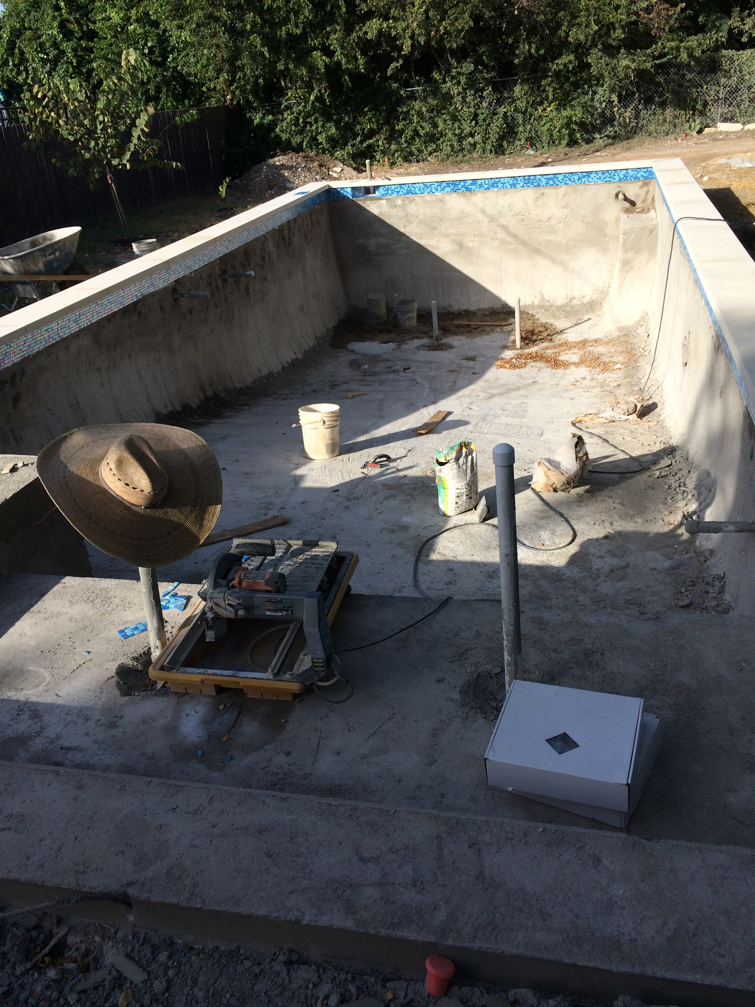 It all started to move pretty fast, they did the gunite, let it dry a day or two. Then tile and coping.