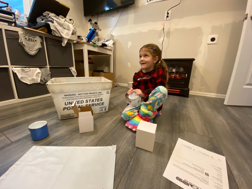 Goose hard at work with Andrea making mugs for all her Black Friday orders.